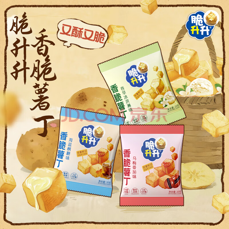 脆升升蜂蜜黄油原切薯丁500g(20g*25袋)混合口味休闲零食小吃非膨化