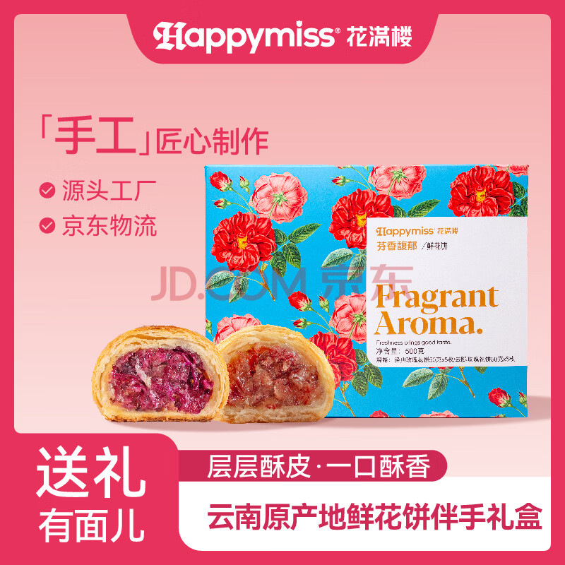 商品名称:花满楼鲜花饼500g云南特产新鲜经典玫瑰5枚+云腿玫瑰5枚【源头直发】