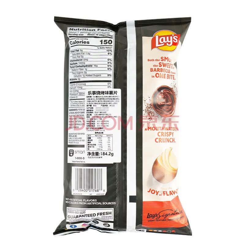 商品名称:乐事(Lay's)薯片经典烧烤味184.2g美国进口 休闲零食膨化食品