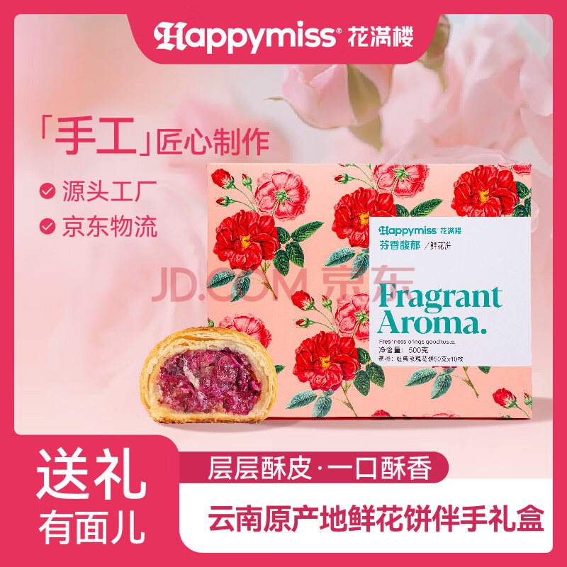 商品名称:花满楼鲜花饼云南特产手工新鲜烤制经典玫瑰鲜花饼礼盒10枚【源头直发】