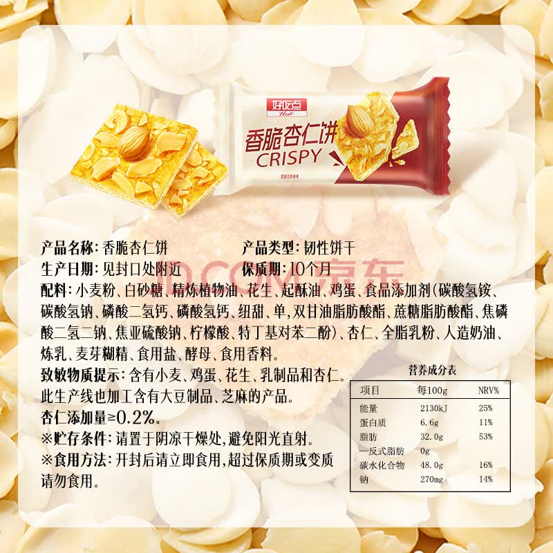 商品名称:好吃点迷你香脆腰果饼500g 宿舍休闲零食分享 独立包装薄脆饼干