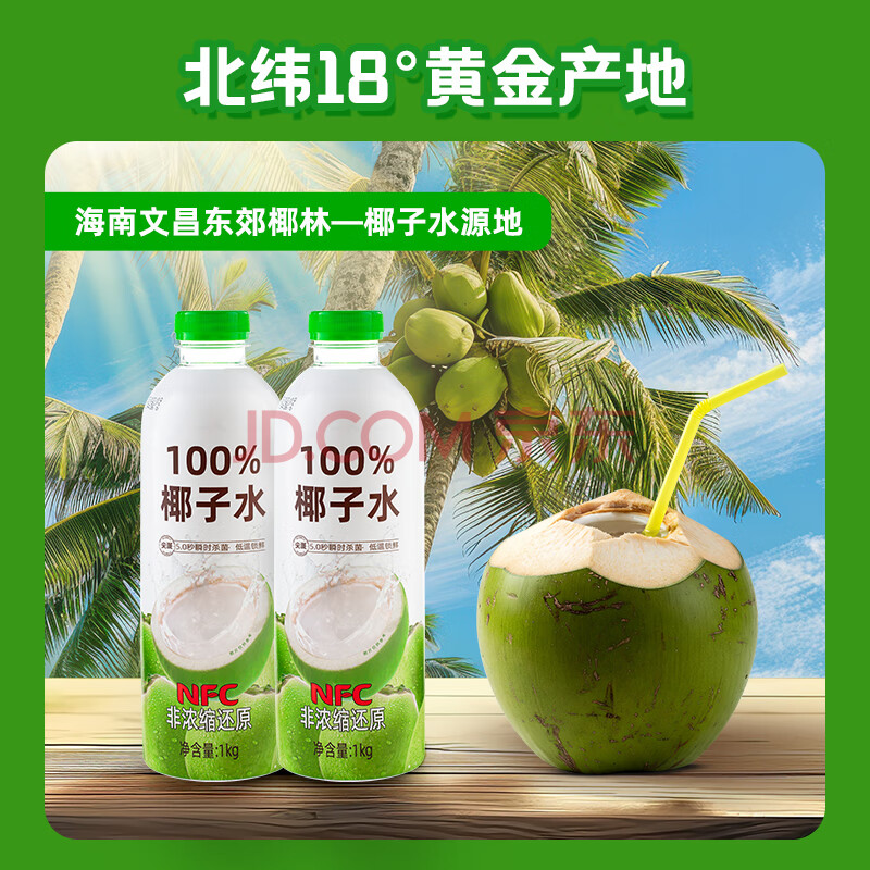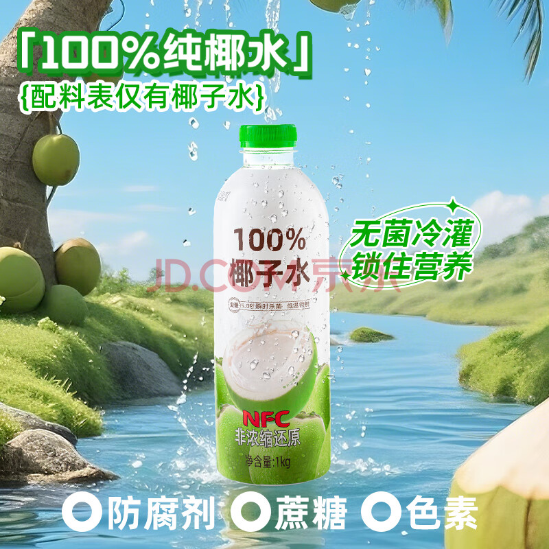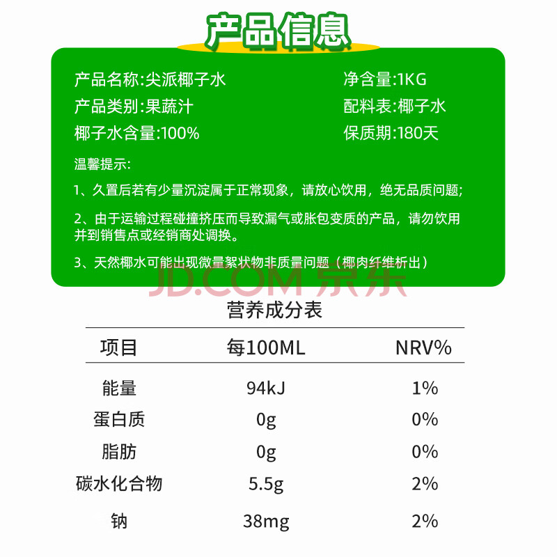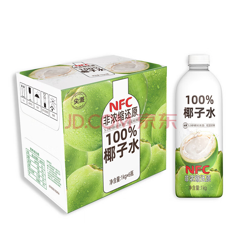 商品名称:尖派100%椰子水富含天然电解质nfc果汁纯椰汁水椰青饮料大瓶1L*6瓶