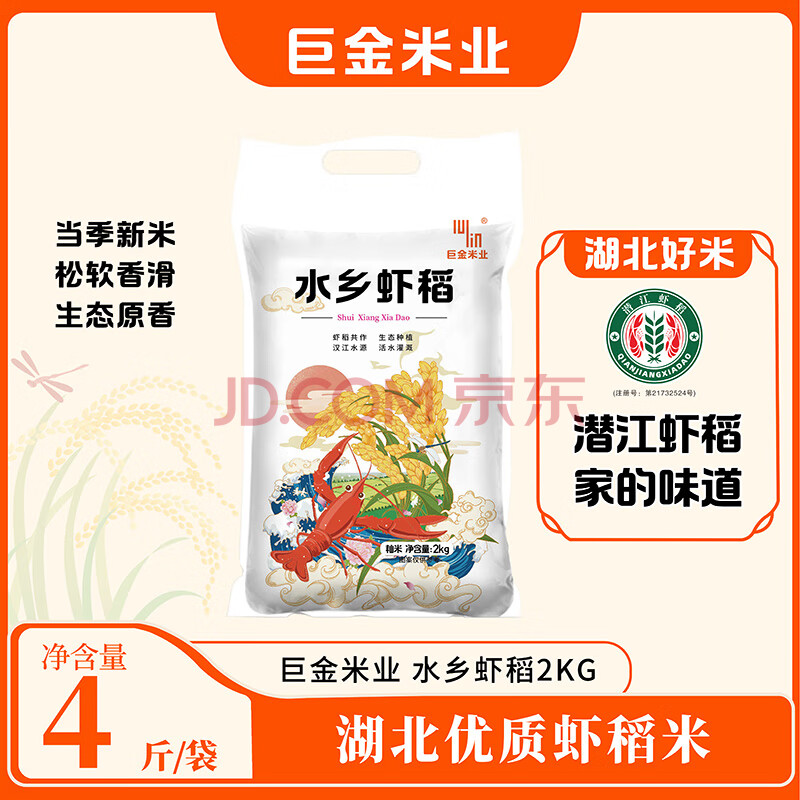 商品名称:巨金米业2025京东新米 潜江水乡虾稻米4斤(真空装)湖北长粒大米籼米油粘米