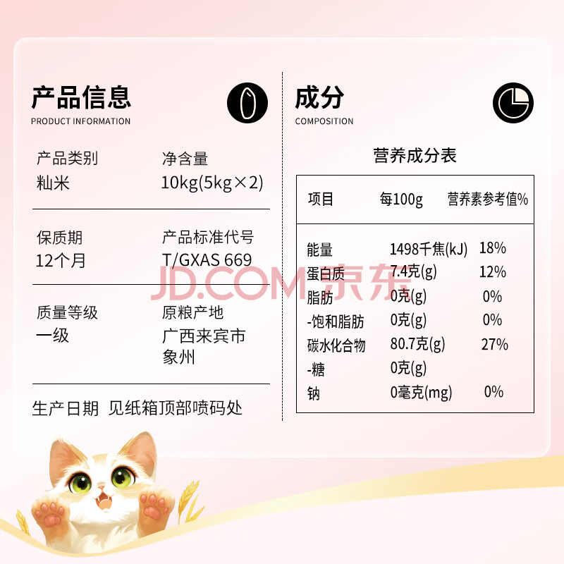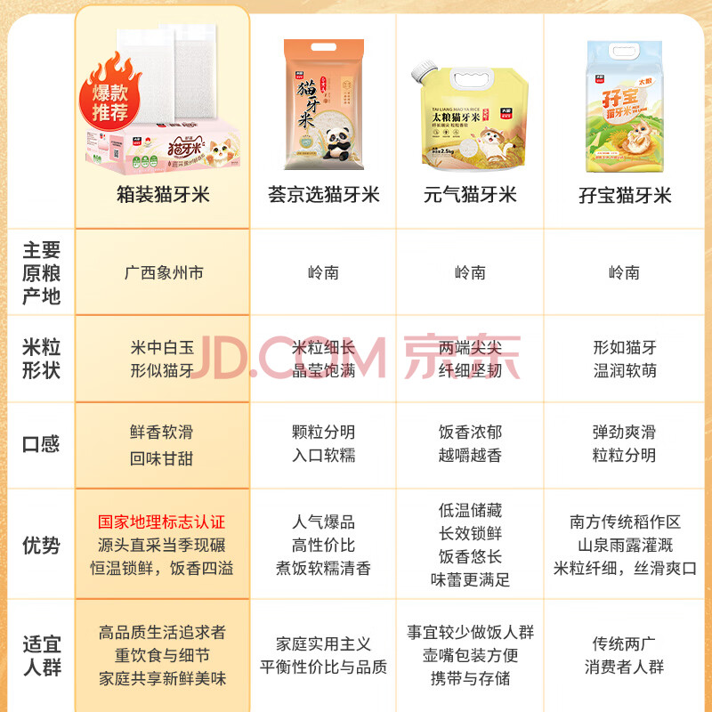 商品名称:太粮鲜碾长粒猫牙米大米20斤箱装 丝苗米象州大米 2025年新米热门商品