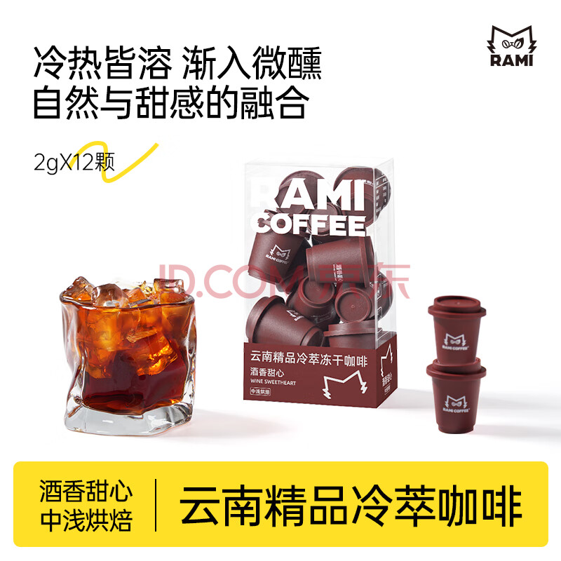 商品名称:燃喵冷萃冻干咖啡 速溶黑咖啡0脂美式咖啡云南咖啡 酒香甜心2g*12颗