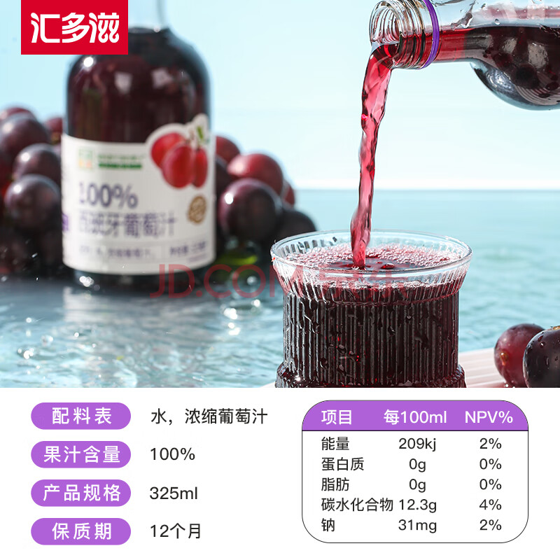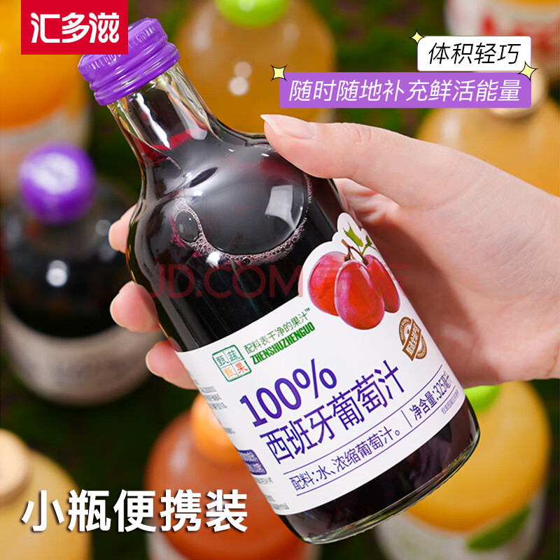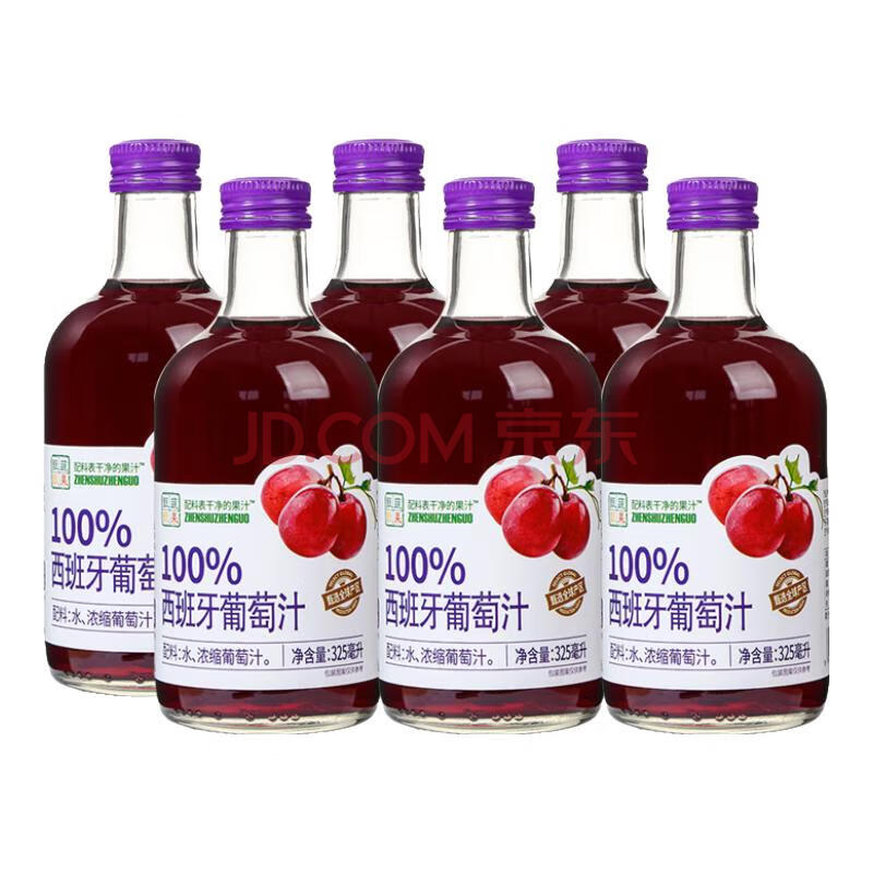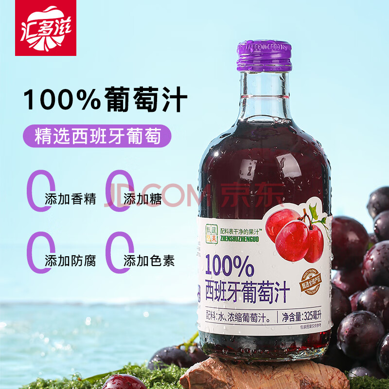 商品名称:汇多滋甄蔬甄果100%纯果汁NFC饮料送礼 玻璃瓶葡萄汁325ml*6瓶 年货