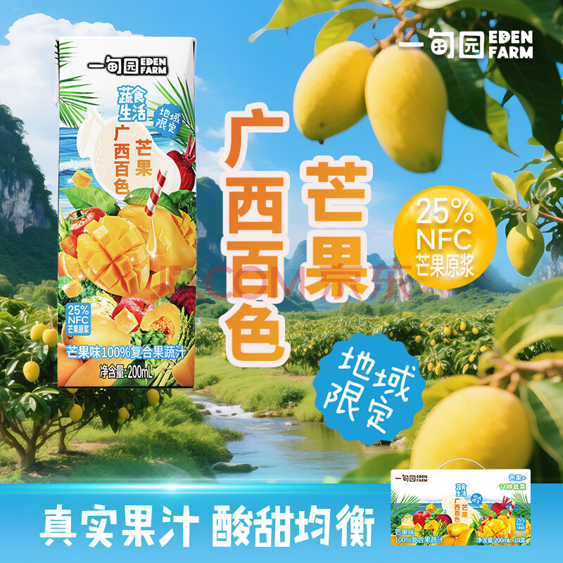 商品名称:一甸园100%芒果汁复合果蔬汁蔬菜果汁饮料200ml*10礼盒装送礼液体沙拉