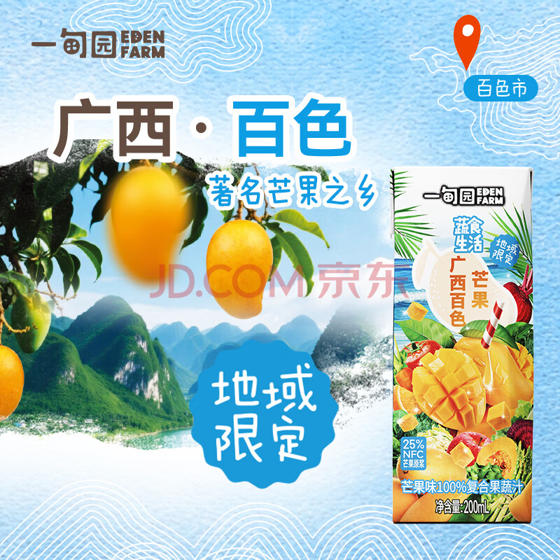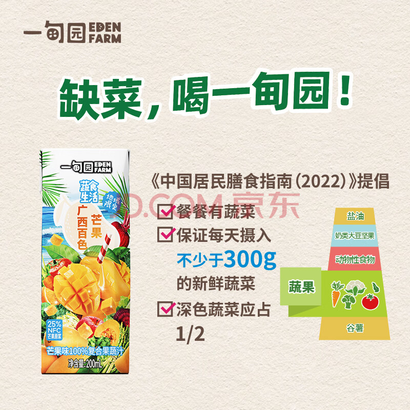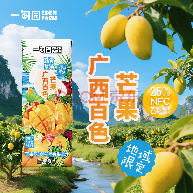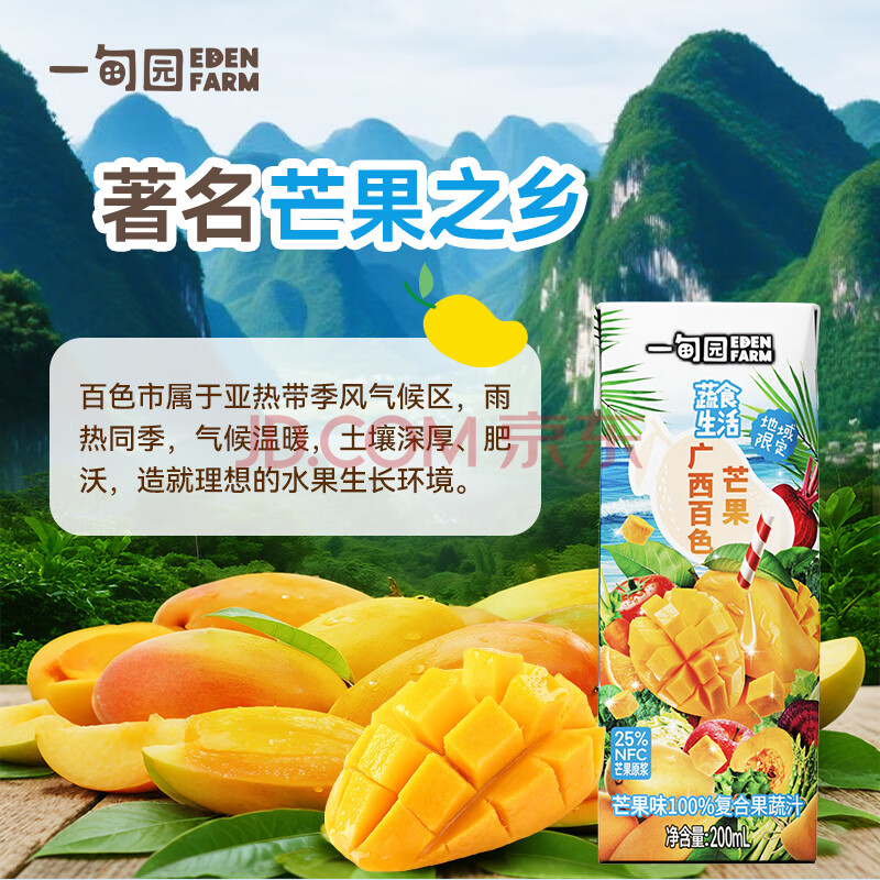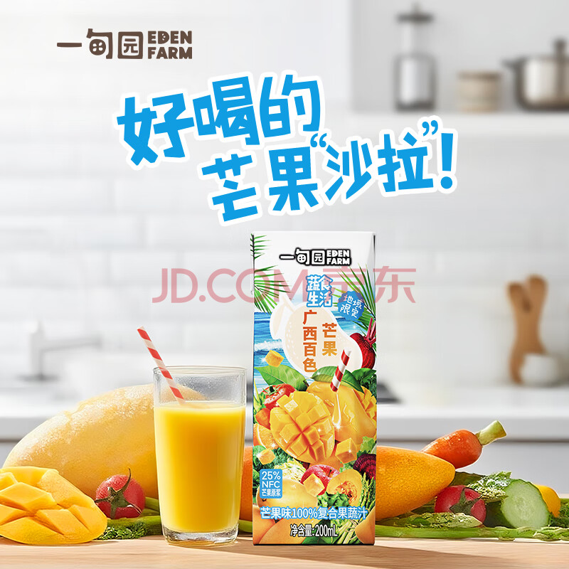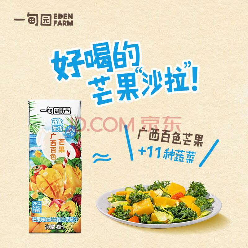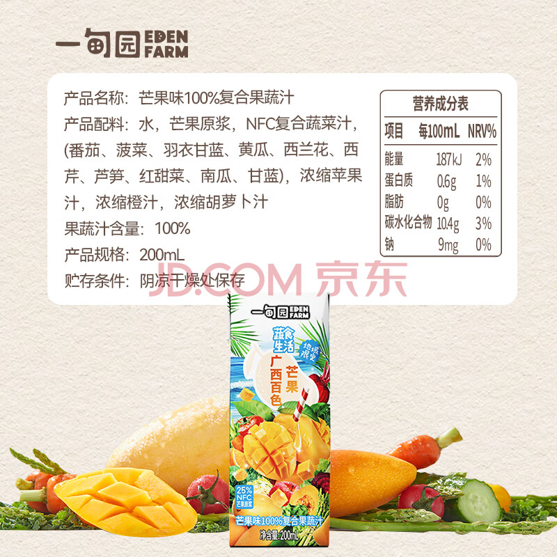商品名称:一甸园100%芒果汁复合果蔬汁蔬菜果汁饮料200ml*10礼盒装 液体沙拉