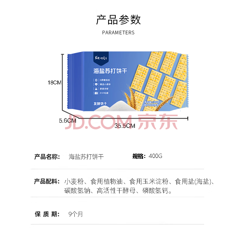商品名称:KE·OLA海盐苏打饼干400g 休闲零食