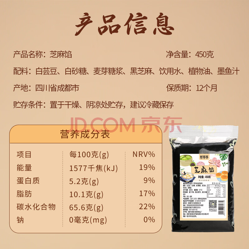 商品名称:鲜窝窝 黑芝麻馅450g 汤圆馅青团馅料包子馅元宵馅糕点家用烘焙馅料