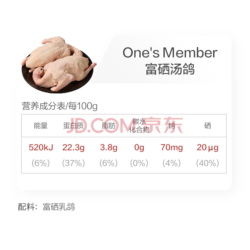 商品名称:1号会员店 富硒汤鸽 530g (2只) 冷冻原粮喂养滋补炖汤烤乳鸽子肉