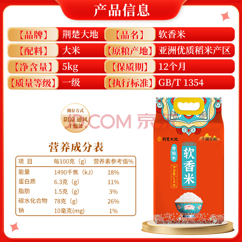 商品名称:荆楚大地软香米10斤大米南方籼米长粒米 当季新米5kg