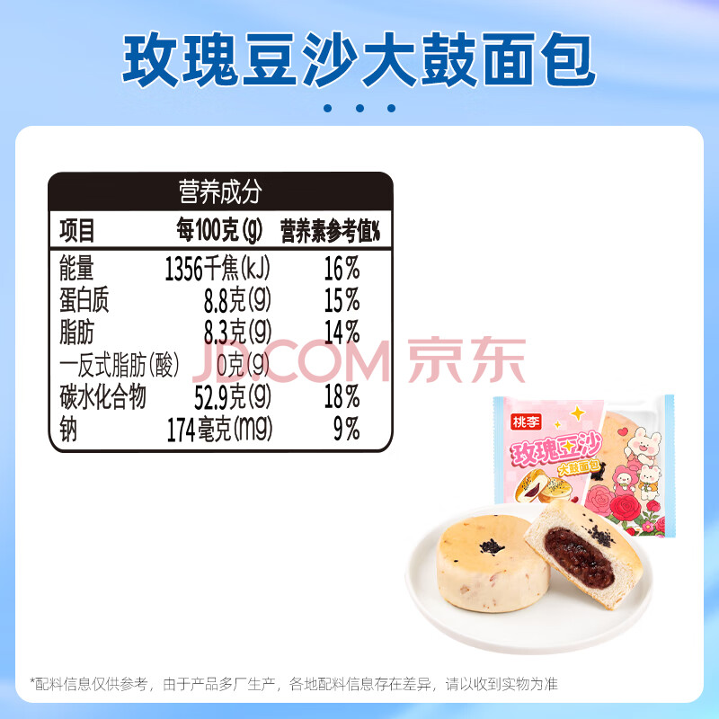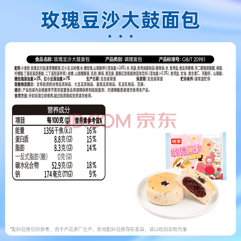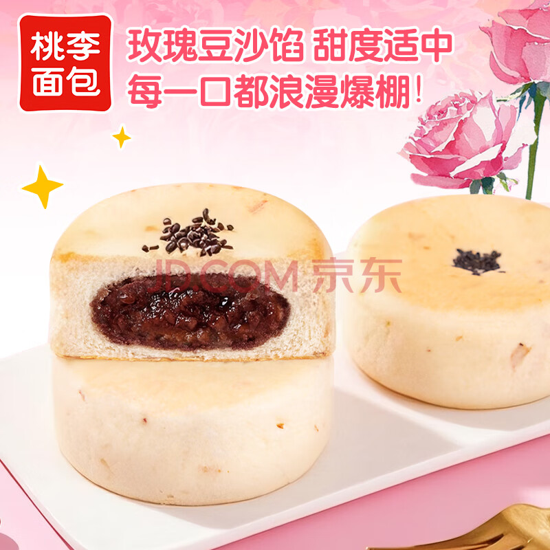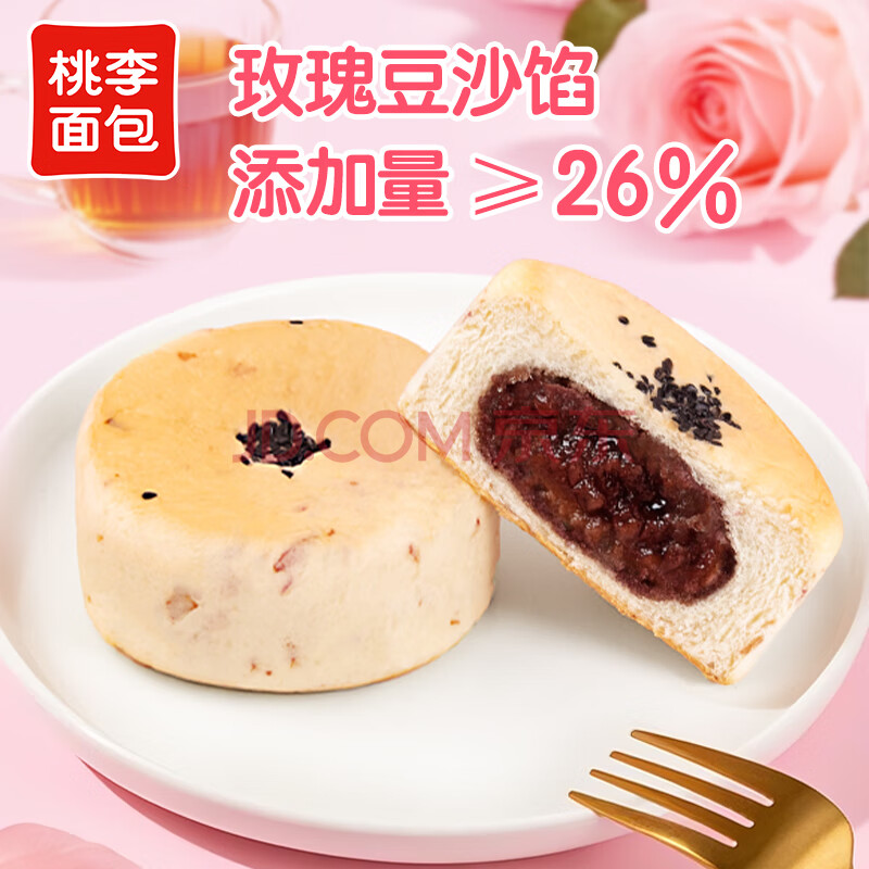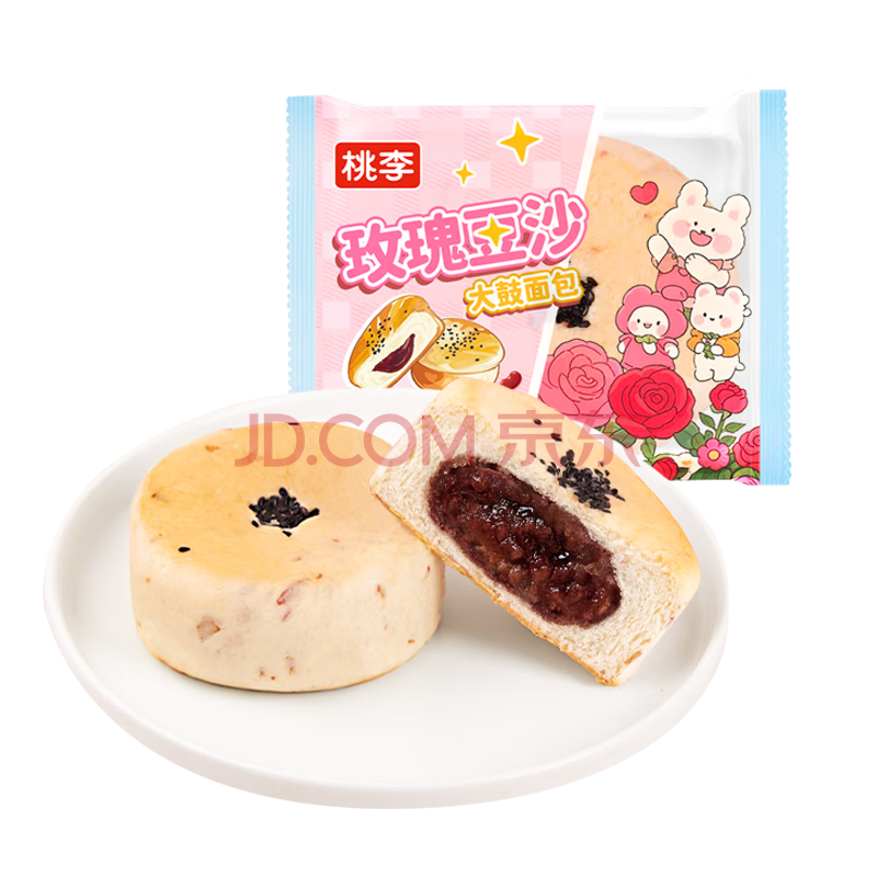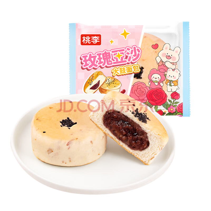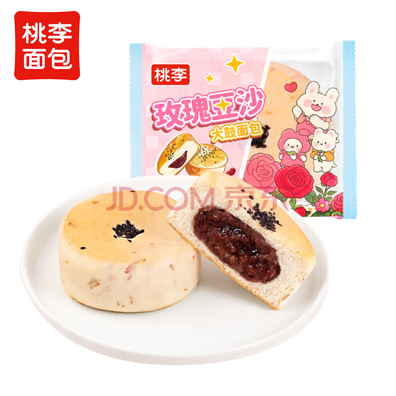 商品名称:桃李玫瑰豆沙大鼓面包红豆夹心蛋糕点营养早餐休闲零食整箱60g*6袋