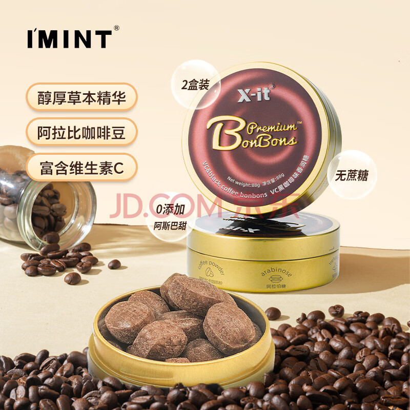 商品名称:I'MINT益美滋 VC冰咖啡糖 88g*3 xit 加班熬夜犯困提神 美式黑咖啡 润喉糖零食
