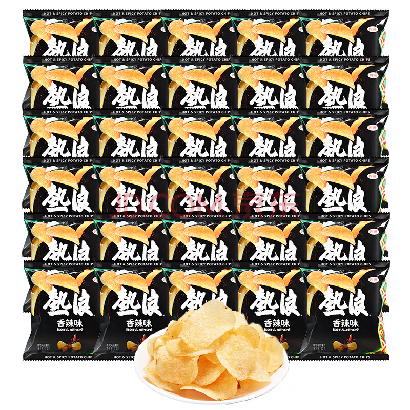 > 四洲热浪薯片香辣味零食网红辣味整箱休解馋22克*30包