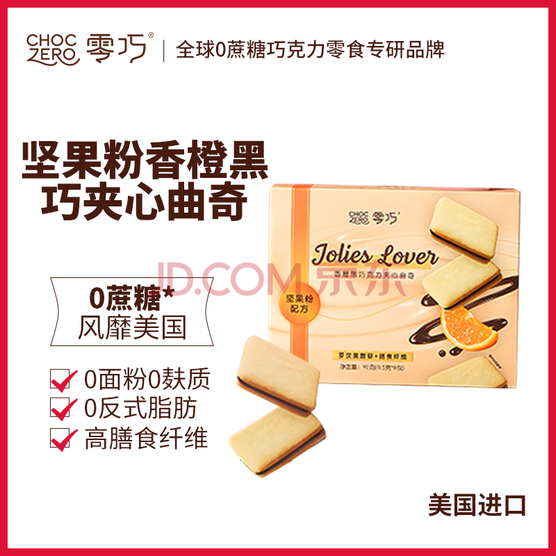 商品名称:CHOCZERO 零巧香橙黑巧克力夹心曲奇92g0面粉无麸质饼干扁桃仁粉0蔗糖小吃