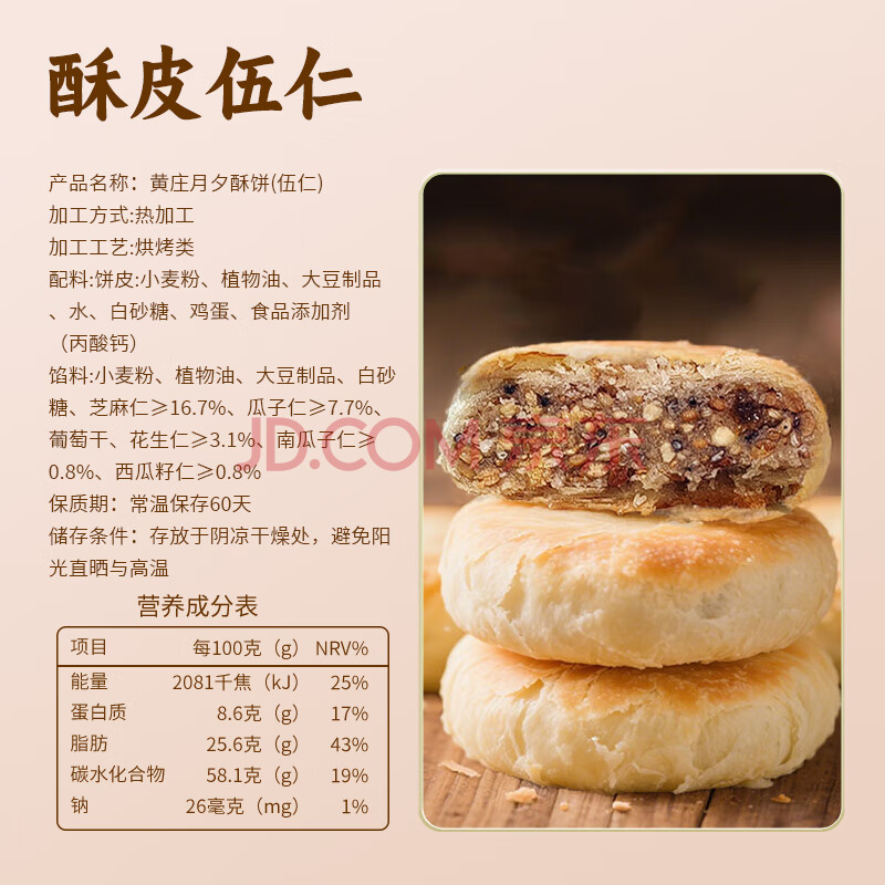商品名称:妙上品伍仁酥饼66g*10伍仁饼传统工艺夹心饼糕点点心代餐下午茶源头直发