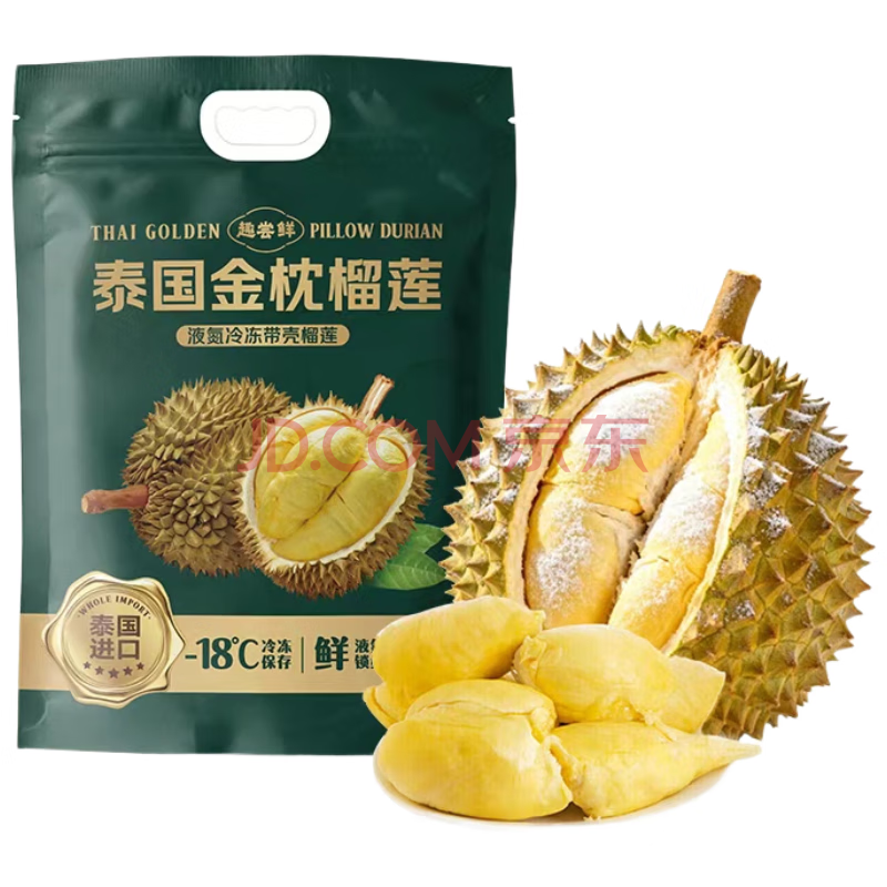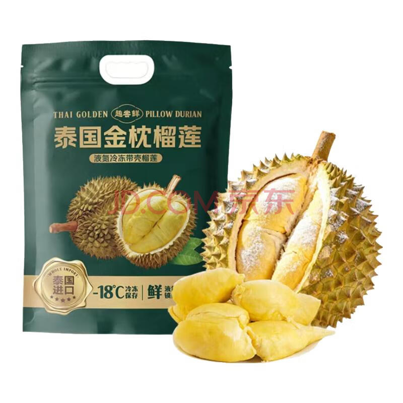 商品名称:趣尝鲜泰国金枕榴莲净重4-5斤保4房树熟液氮冷冻生鲜进口水果