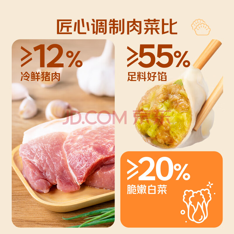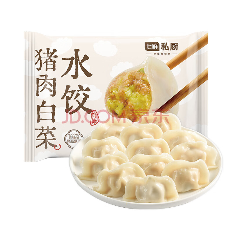 商品名称:七鲜私厨猪肉白菜水饺1kg/48只早餐夜宵生鲜速食速冻饺子半成品面点家庭装