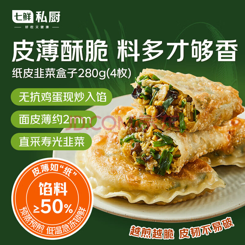 商品名称:七鲜私厨纸皮韭菜盒子280g(4枚)韭菜鸡蛋馅饼早餐半成品速食空气炸锅食物