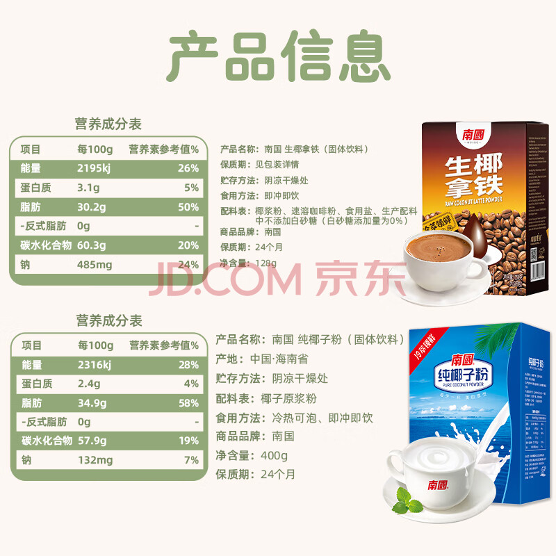 > 南国纯椰子粉400g+生椰拿铁128g(16g*8条)海南特产早餐冲饮中秋礼品