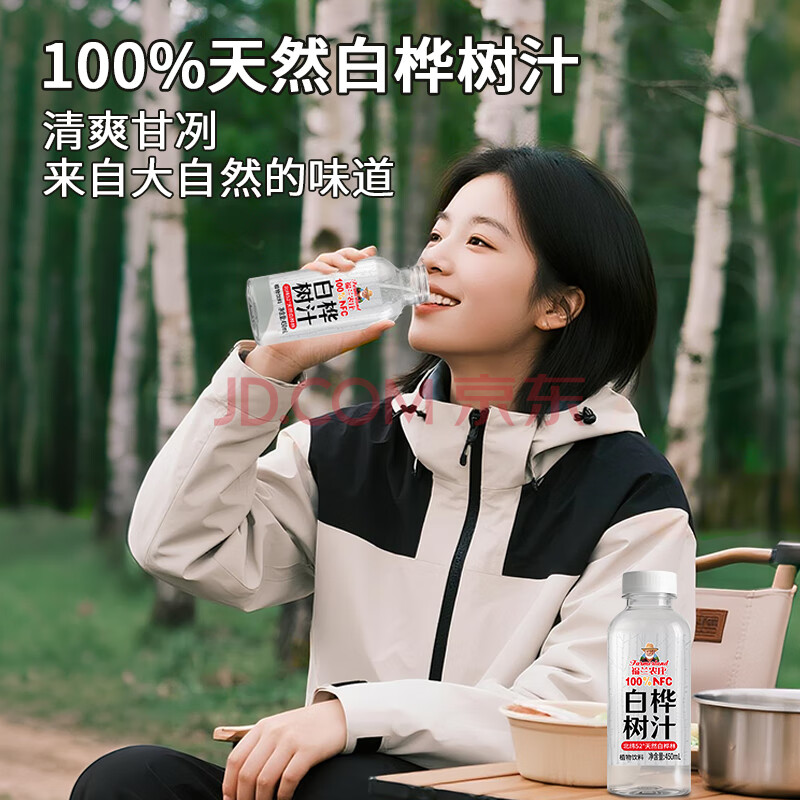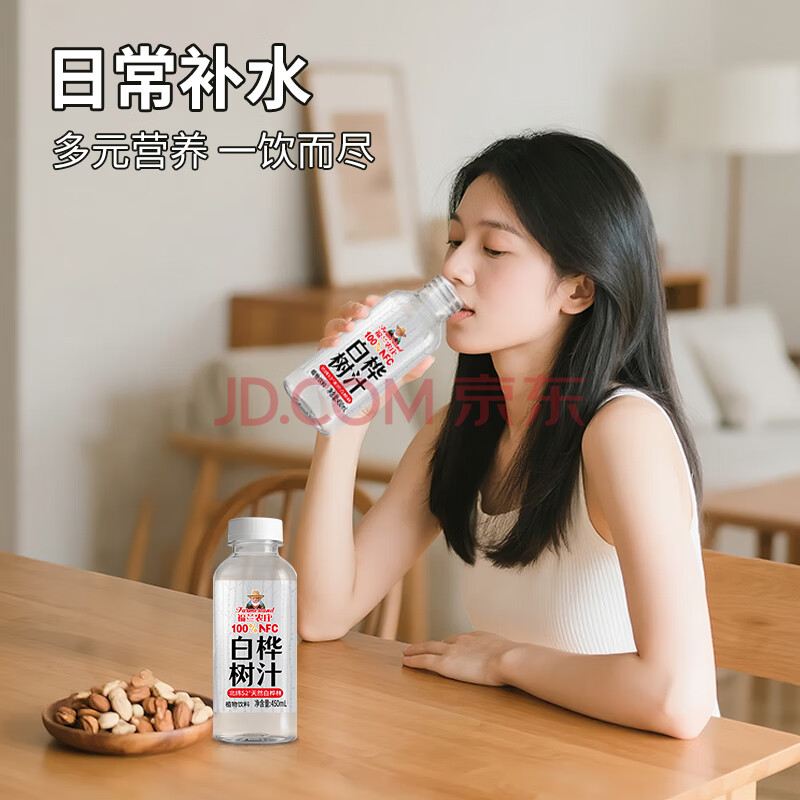 > 福兰农庄100%白桦树汁原液0脂肪天然植物饮料450ml*6瓶整箱装