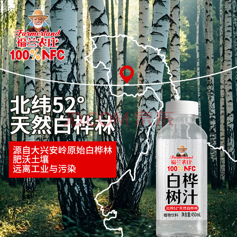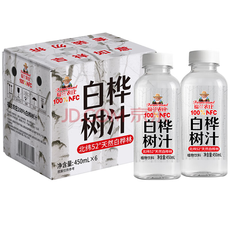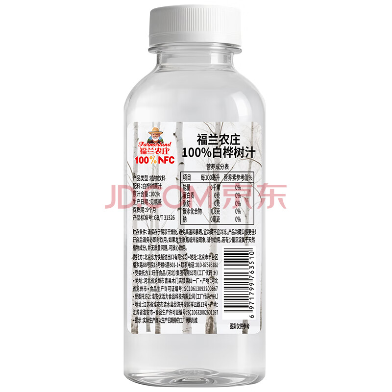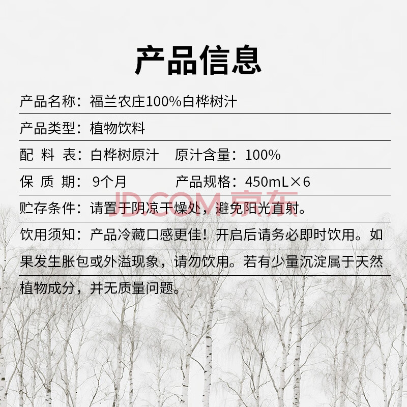 商品名称:福兰农庄100%白桦树汁原液0脂肪天然植物饮料450ml*6瓶整箱装