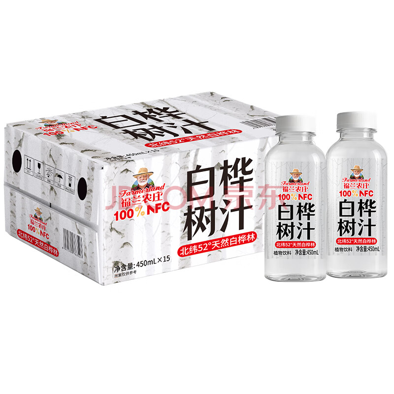 商品名称:福兰农庄100%白桦树汁原液0脂天然植物饮料450ml*15瓶整箱产自北纬52°年货
