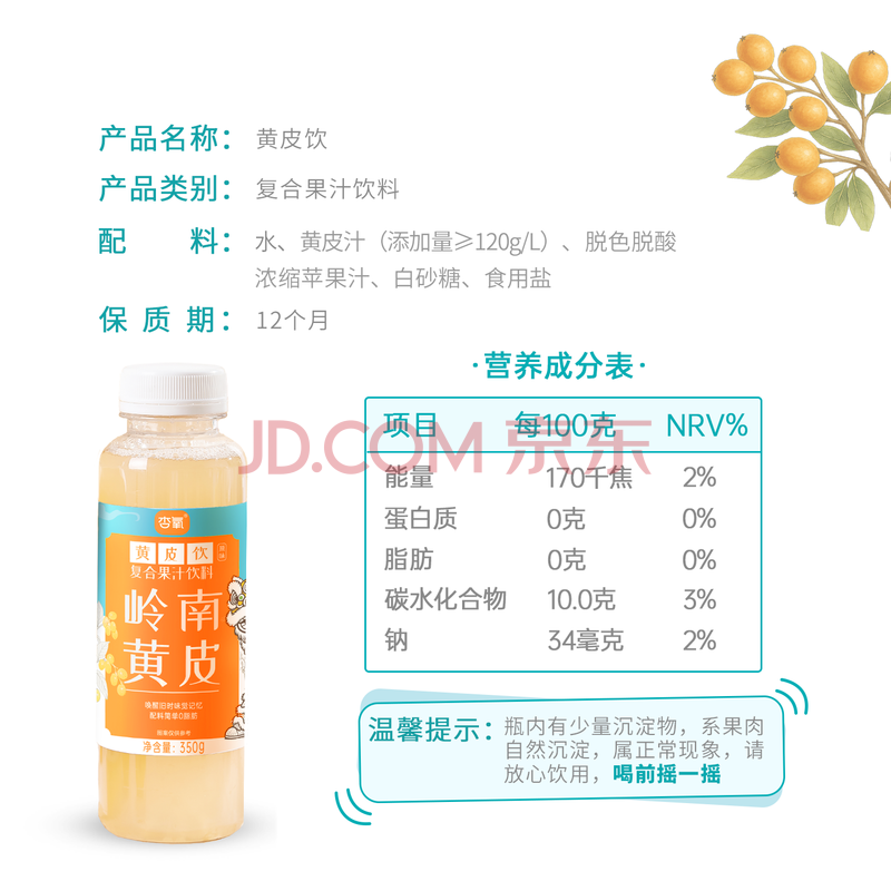 商品名称:杏氧岭南黄皮饮果汁饮料0脂0添加 350g*10瓶礼盒装