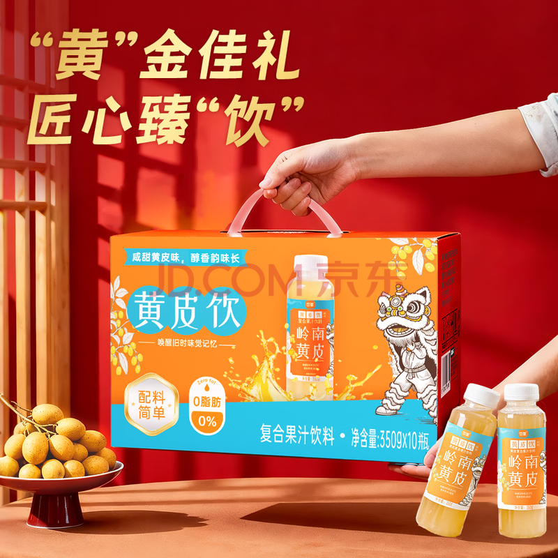 > 杏氧岭南黄皮饮果汁饮料0脂0添加 350g*10瓶礼盒装