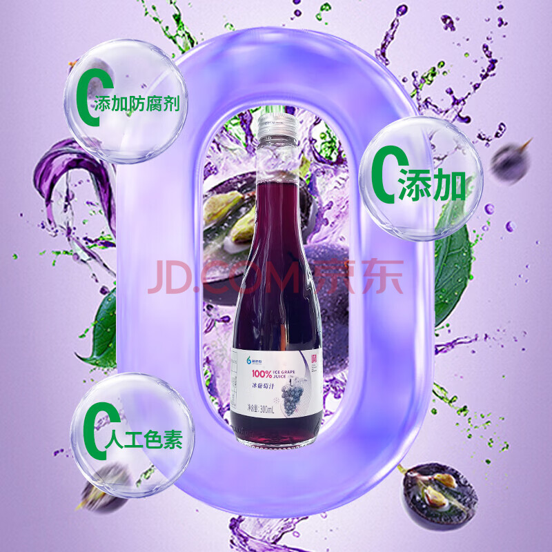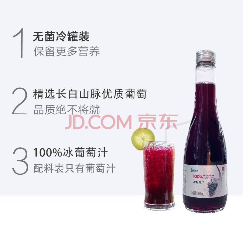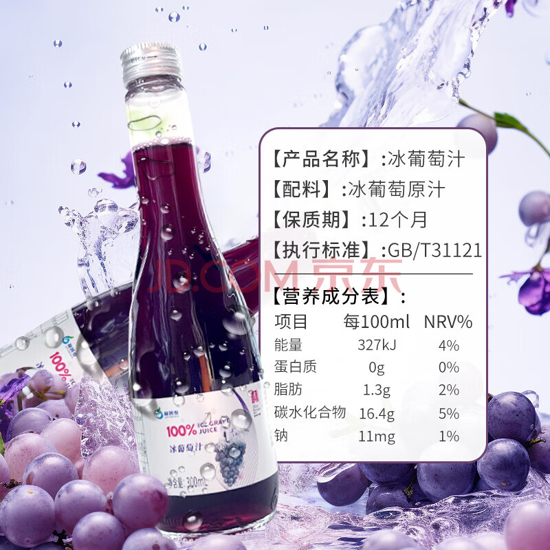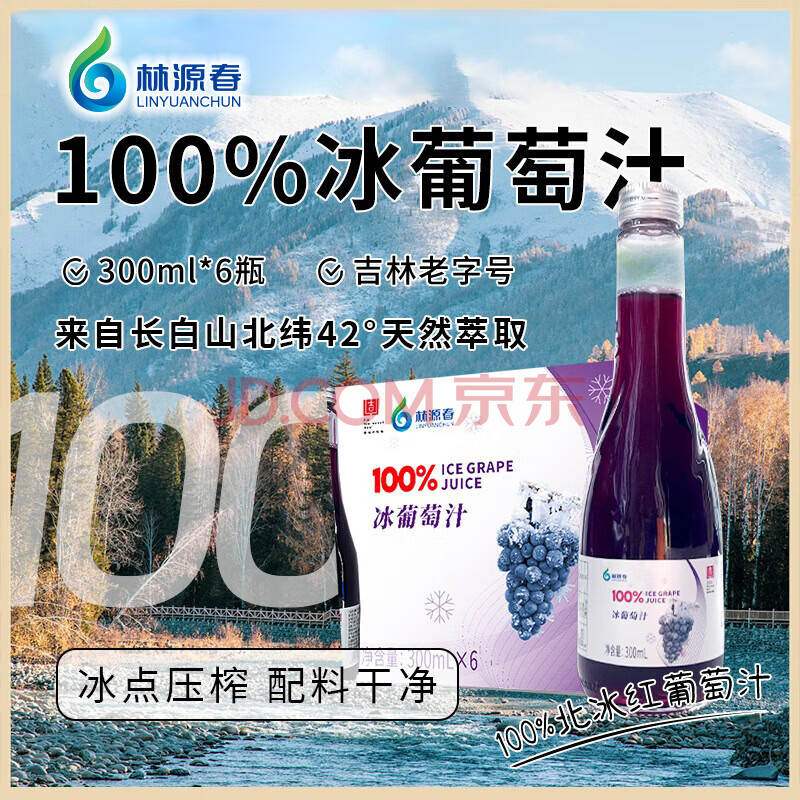 商品名称:林源春100%冰葡萄汁北冰红冰点压榨植物果味饮料年货礼盒果汁300lm*6瓶