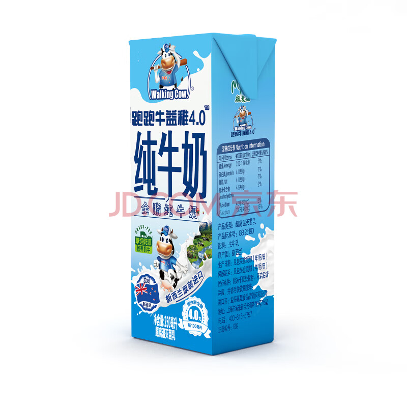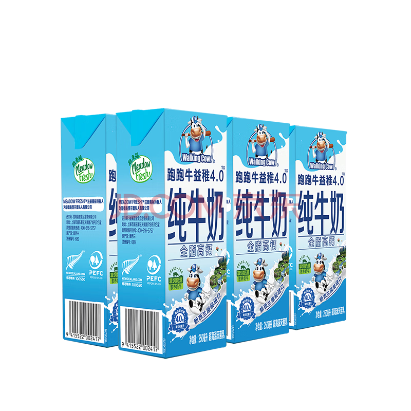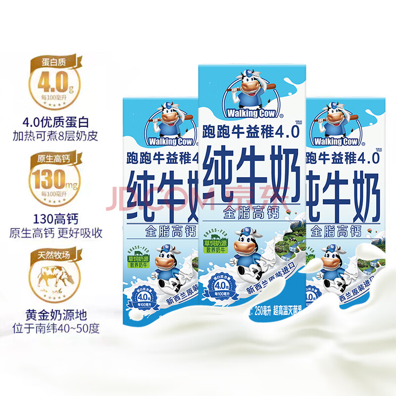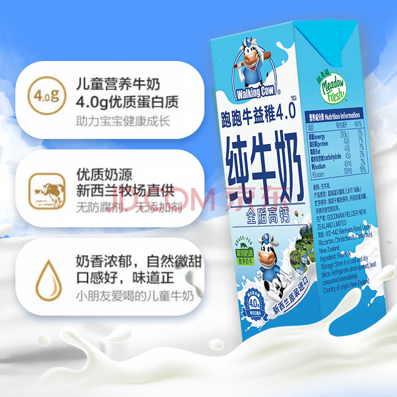 商品名称:纽麦福(Meadow fresh)新西兰进口牛奶跑跑牛益稚4.0g蛋白全脂牛奶高钙儿童奶250ml*24盒