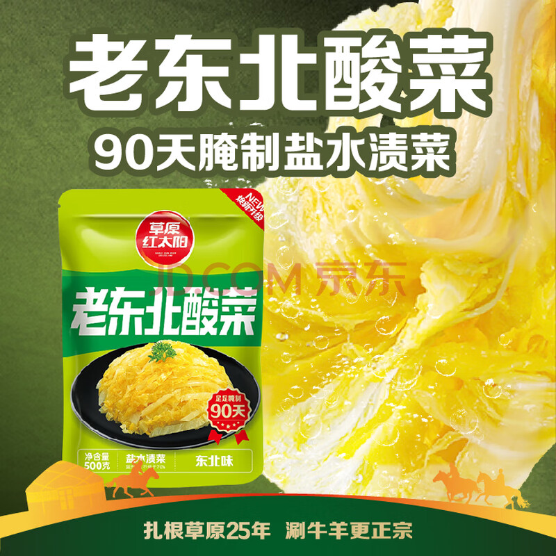 > 草原红太阳老东北酸菜500g 正宗东北酸菜酸菜芯饺子馅料炖粉条