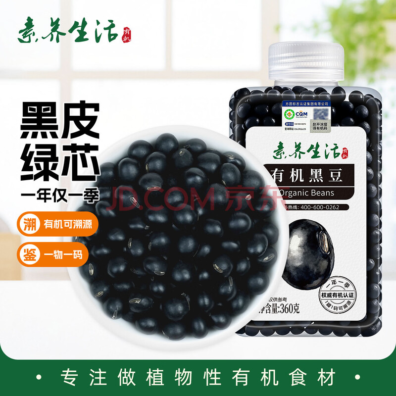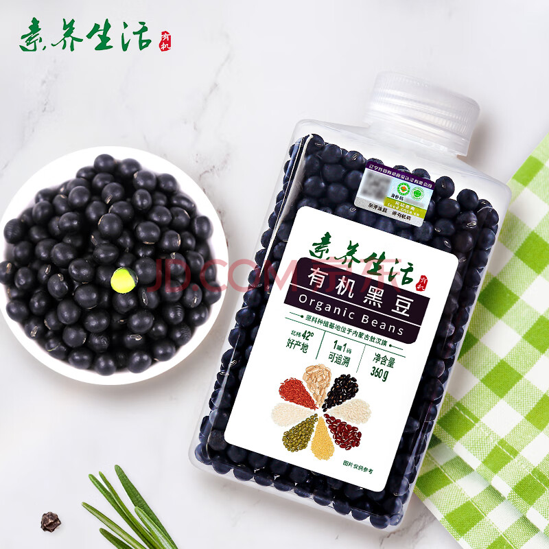 商品名称:素养生活有机黑豆360g 黑大豆 东北黑豆 杂粮豆 粗粮 打豆浆 无染色
