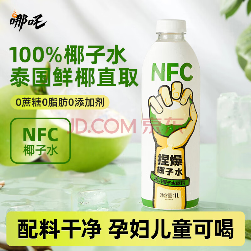 商品名称:哪吒100%NFC椰子水1L含电解质钾0添加蔗糖儿童果汁饮料品泰国椰青椰水
