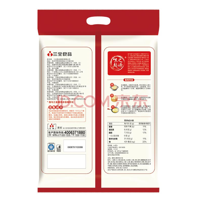 商品名称:三全猪肉大葱水饺1005g早餐速冻生鲜食品