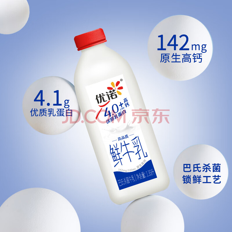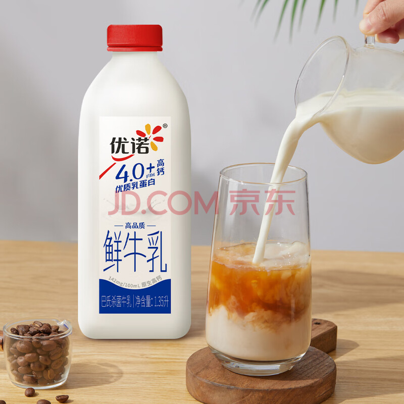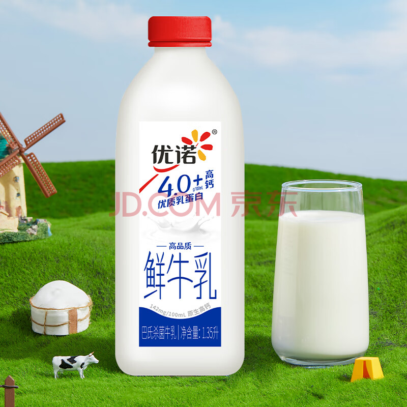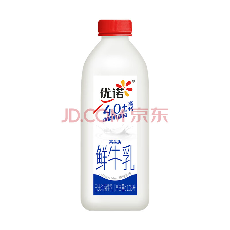 商品名称:优诺(yoplait)4.0+优质乳蛋白 鲜牛奶巴氏杀菌鲜奶1.35L/桶 营养早餐 低温牛乳