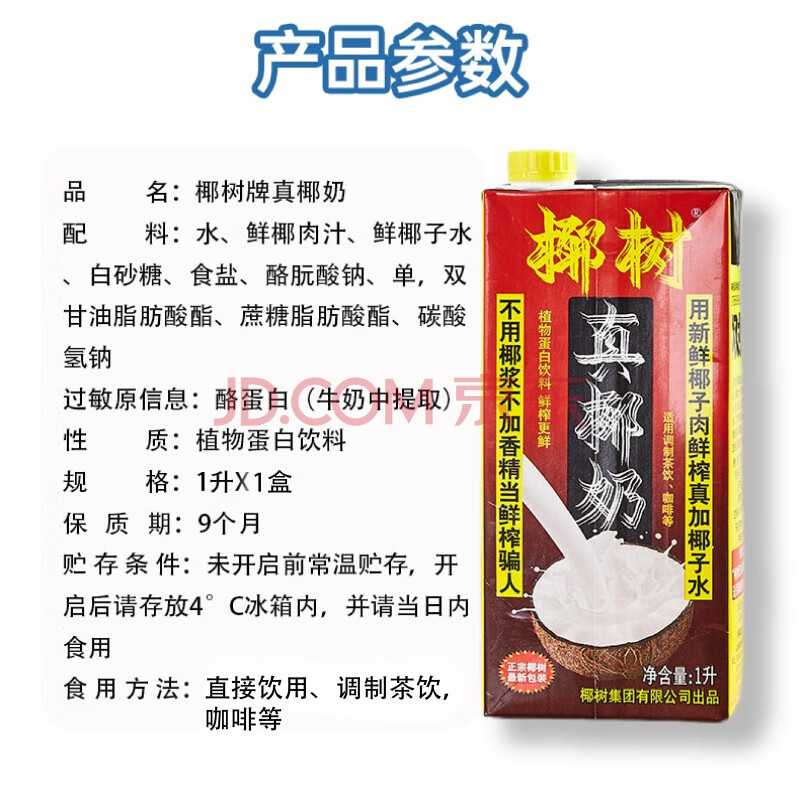 商品名称:椰树 厚椰乳 真椰奶 1L/盒 植物蛋白饮料 DIY咖啡茶饮 年货送礼年货