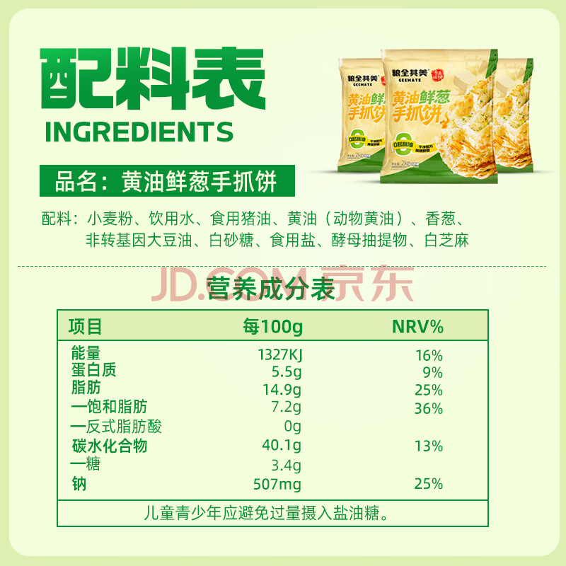 商品名称:粮全其美黄油鲜葱手抓饼 2kg/20片 葱油饼学生营养早餐半成品食品年货送礼