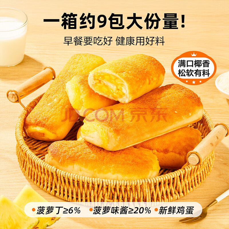 商品名称:良品铺子全麦椰香菠萝卷720g夹心手撕吐司面包整箱营养早餐休闲零食