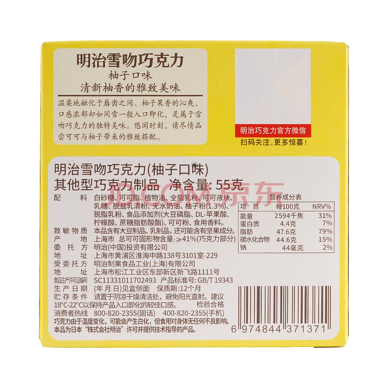 商品名称:明治meiji 雪吻巧克力柚子味 55g 休闲零食 糖果 生日礼物 喜糖 伴手礼