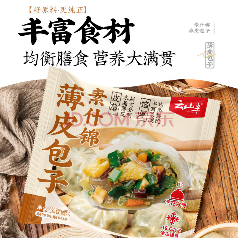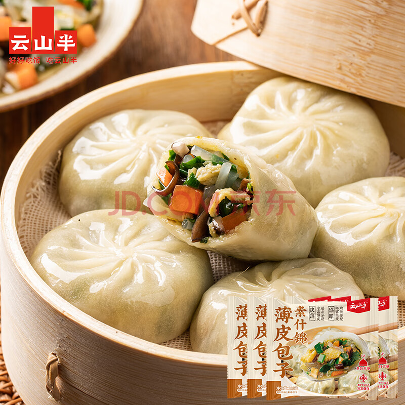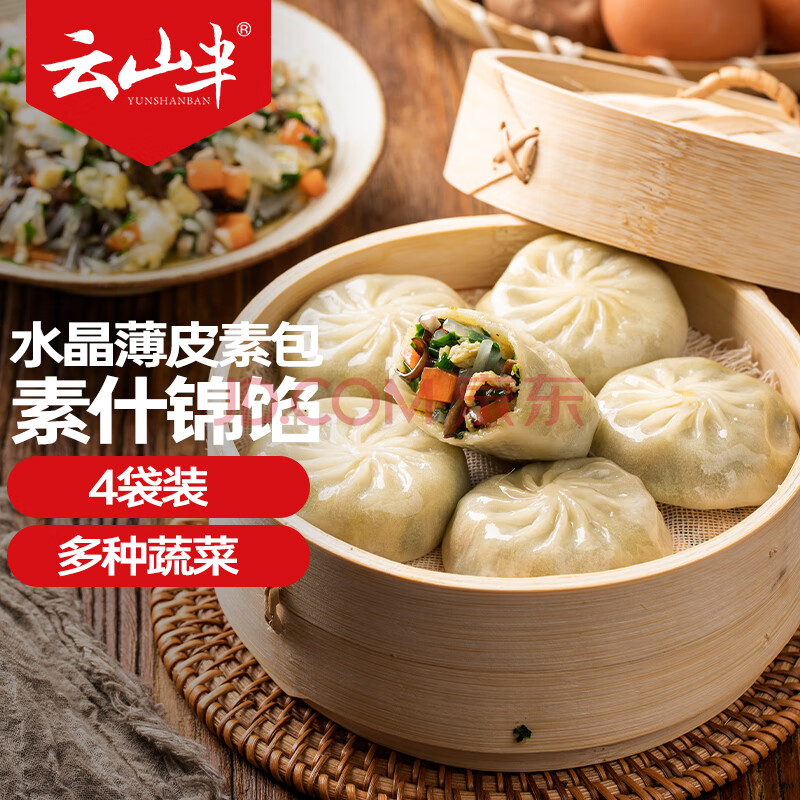 > 云山半什锦馅水晶薄皮素包330g*4袋 共40个 半成品早餐包子 速食面点