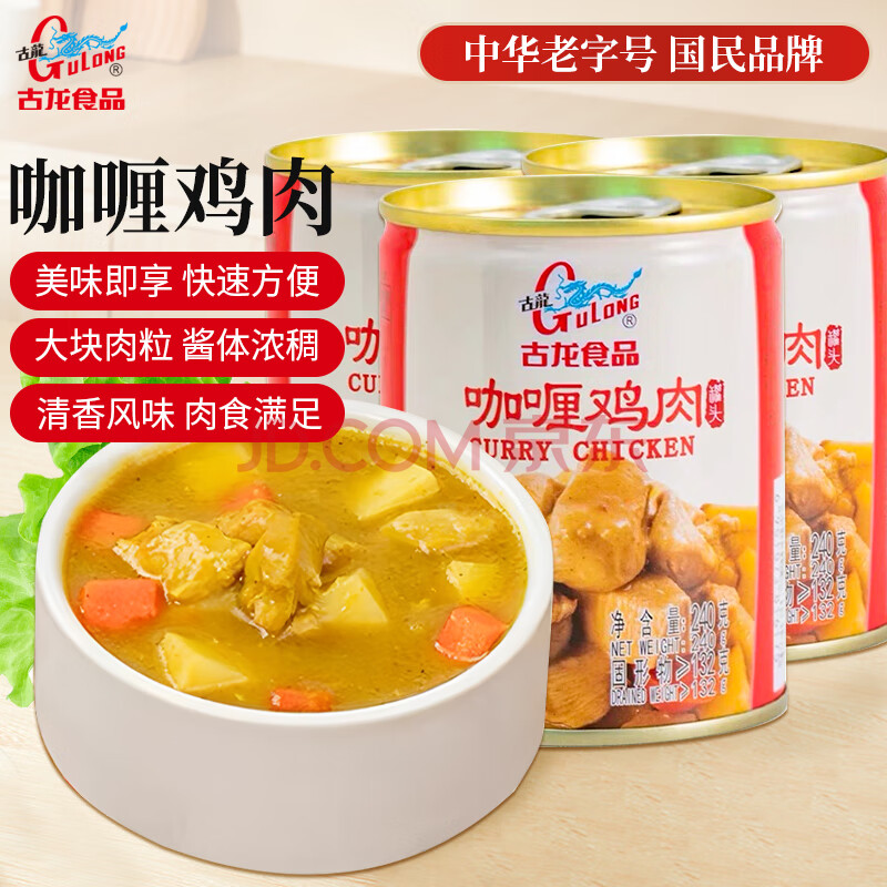 商品名称:古龙咖喱鸡肉240g*3罐 罐头加热即食方便速食下饭菜料理拌面拌饭盖饭