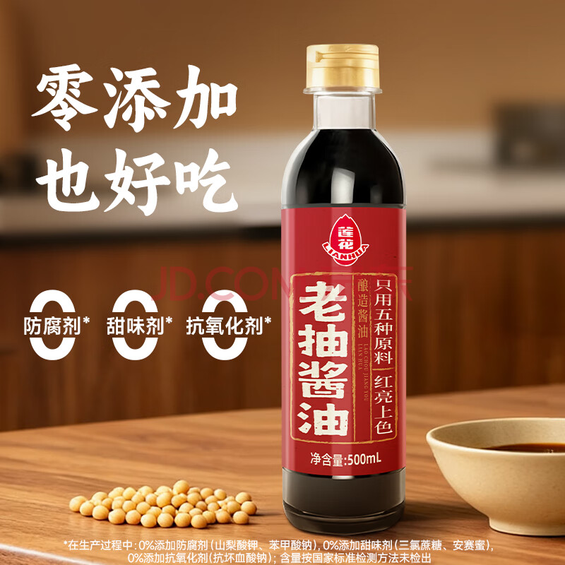 莲花0添加老抽酱油500ml【零添加】一级酿造红烧上色炒菜提鲜家用