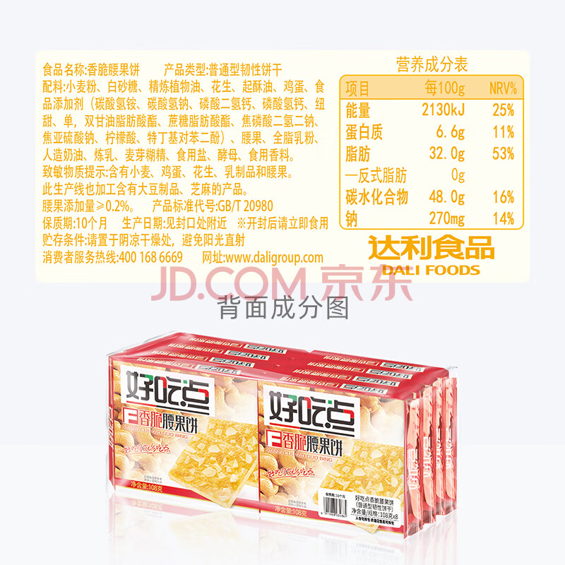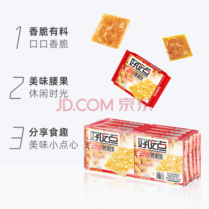 商品名称:好吃点香脆腰果饼108g*8包薄脆饼干独立包装办公室休闲零食
