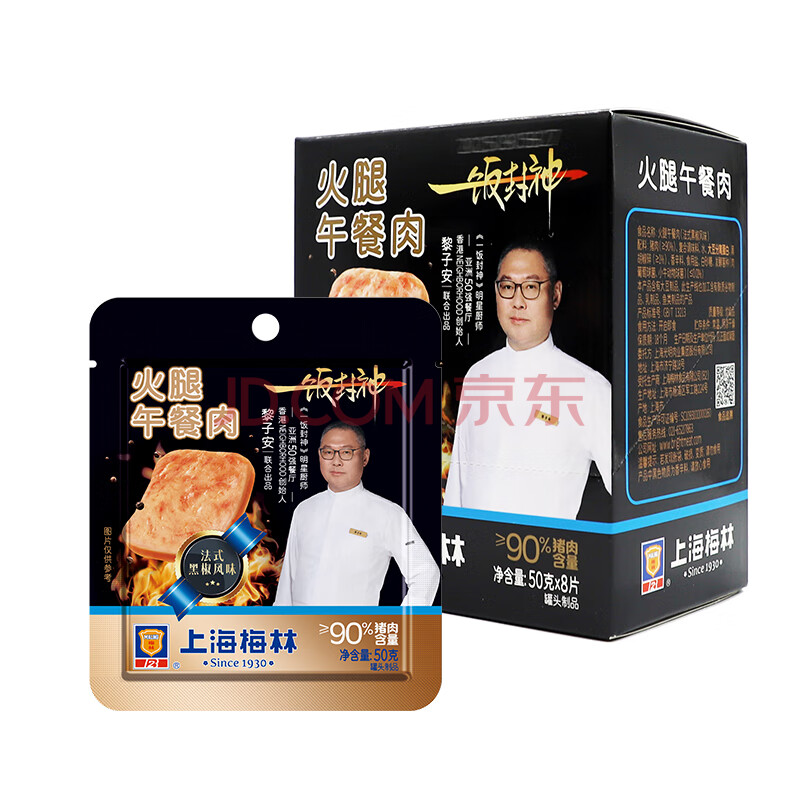 商品名称:MALING上海梅林X一饭封神 火腿片装午餐肉法式黑椒50g*8片猪肉含量≥90%