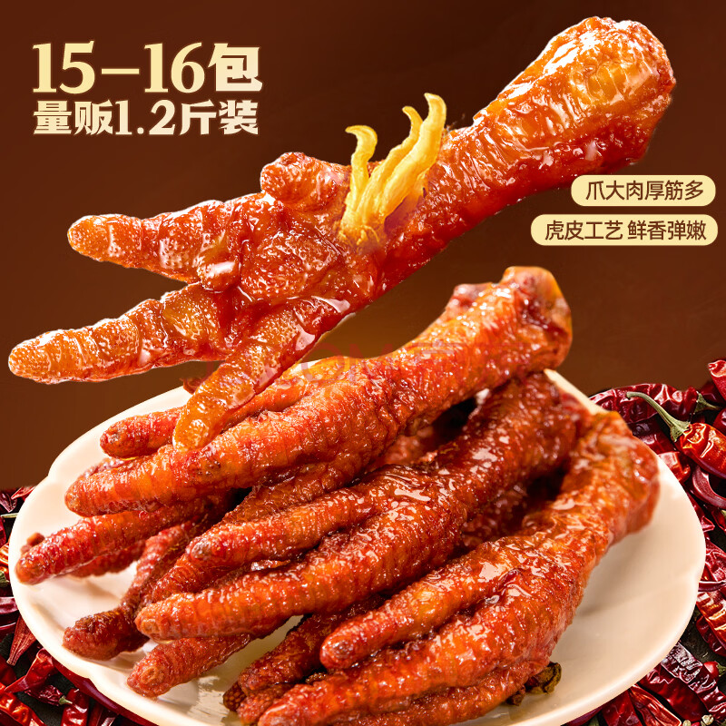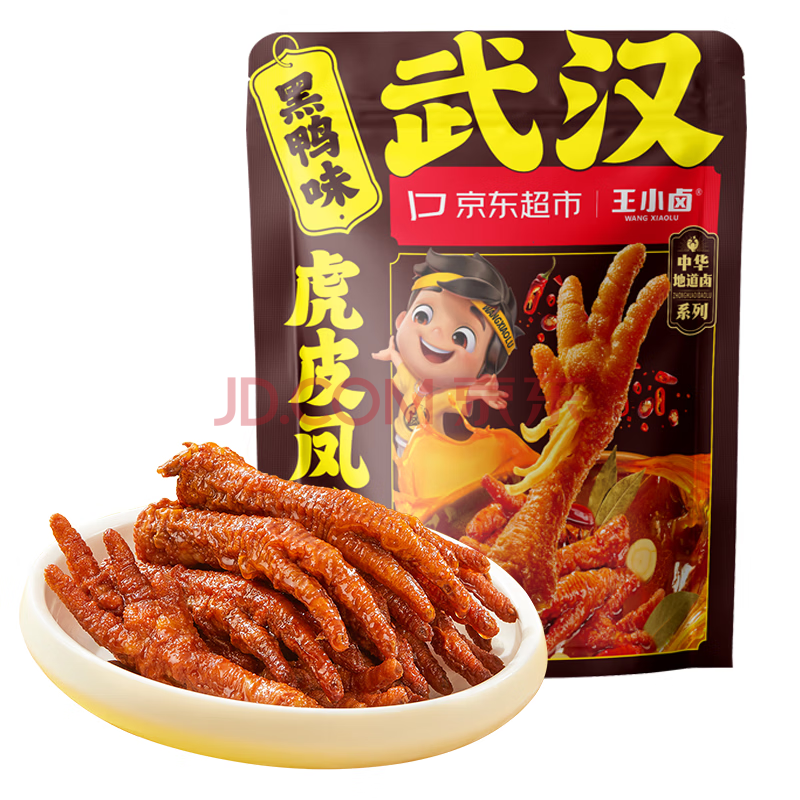 商品名称:王小卤虎皮凤爪卤鸡爪卤味休闲解馋鸡肉追剧小零食开袋即食黑鸭味618g