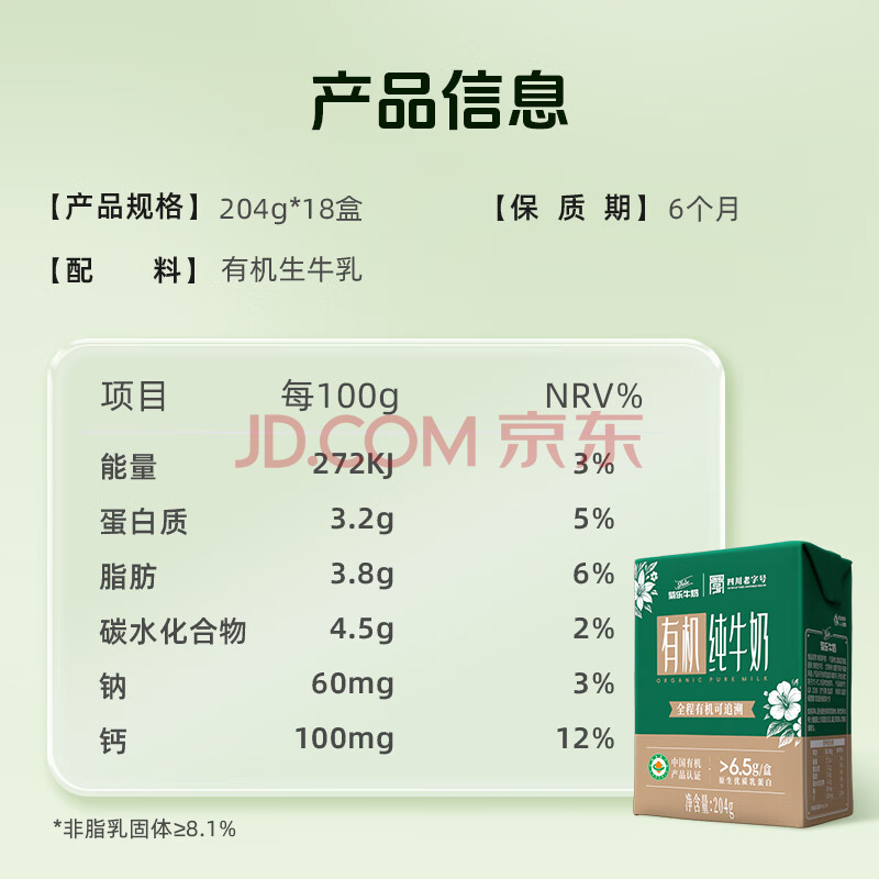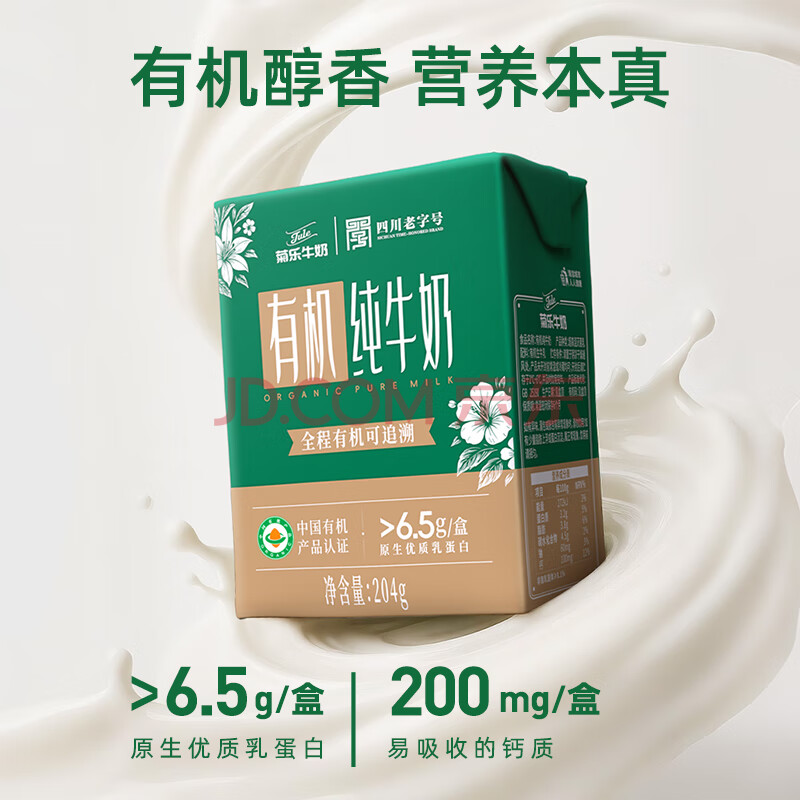 商品名称:菊乐(JULE)有机牛奶四川老字号儿童学生营养早餐奶204g*18盒送礼盒装