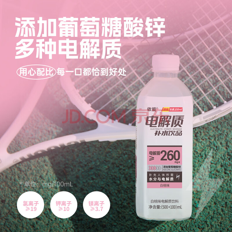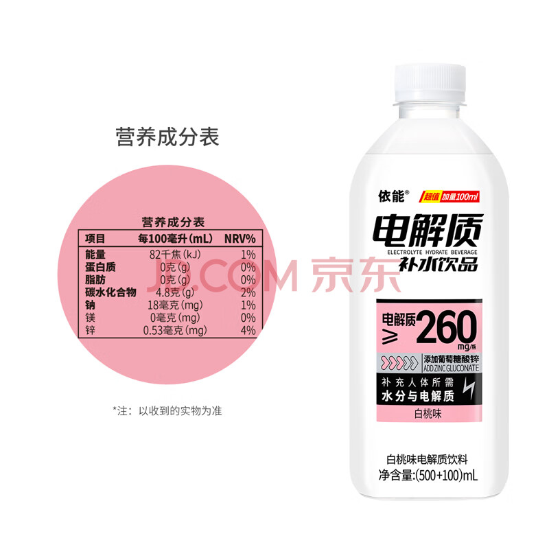 商品名称:依能 电解质水 白桃味饮料 补液盐补水饮品 600ml*12膜包 等渗加量装