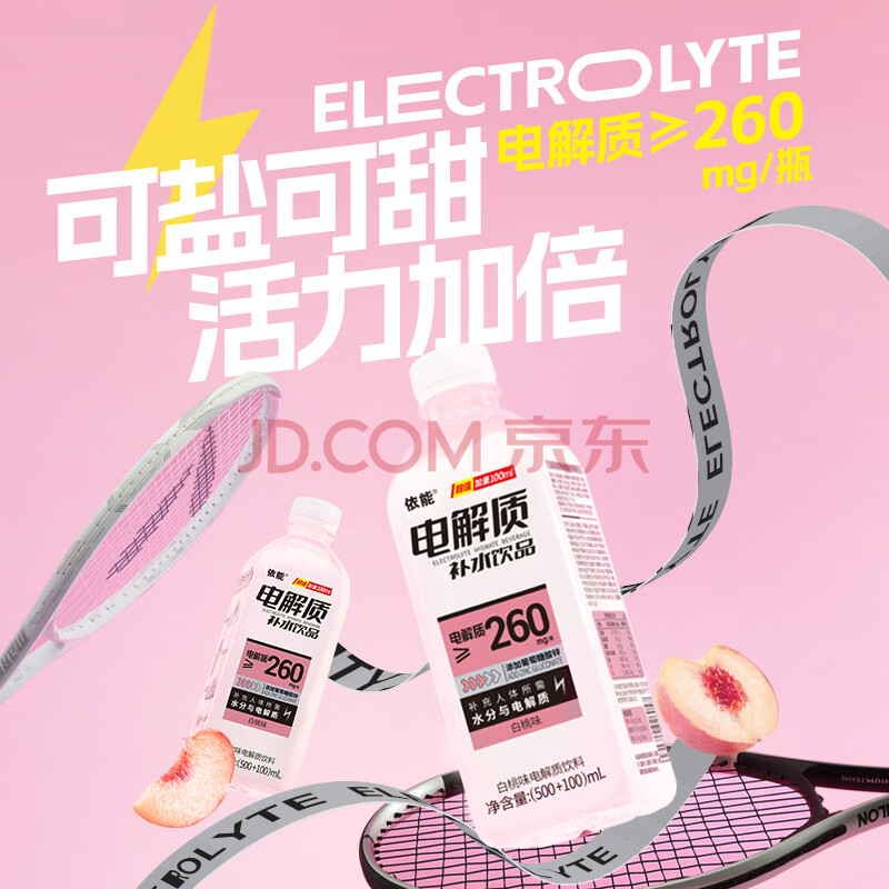 > 依能 电解质水 白桃味饮料 补液盐补水饮品 600ml*12膜包 等渗加量装